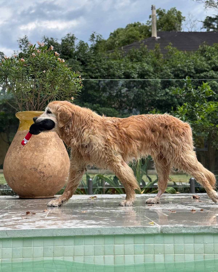 To be completely honest, his position on the pool is a bit divided. He doesn’t like the going in part – he’s too creaky to manage it himself these days so I have to do an interesting lying-down-sliding-in situation (it’s as awkward as it sounds). Once he’s in, he loves it, and will happily do some leisurely laps and spend time just spa-ing (lying in the pool). But honestly, he is at his most energetic when he gets out – he just loves striding around the pool! Asserting his ownership, perhaps? 🤔