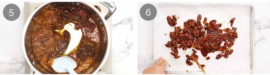 Spread the pecans in a single layer on a baking paper lined tray as best you can. The toffee starts to hard quickly so it can be a battle! But don’t worry if you have pecan clumps, a thinner layer is just easier to chop than giant mounds of hard pecan toffee, and cools faster too.