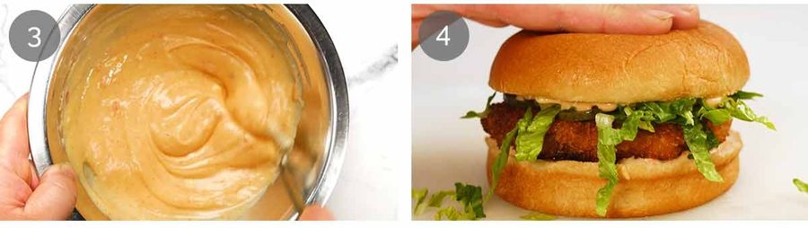 Use pillowy soft buns for the best eating experience and your favourite seafood sauce. I’ve gone with Bang Bang Sauce today, inspired by the flavours of the ever-popular Bang Bang Shrimp – crispy prawns tossed in a creamy-spicy sauce, a match made in heaven. Yes, that’s coming here soon!
