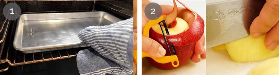 - 2largegala apples(or 3 medium), peeled, cut in half, core removed, sliced 0.5cm / 0.2″ thick (Note 2)
