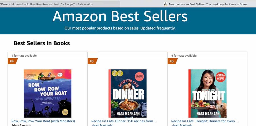 Ah. So this is what it feels like to be dethroned by your own darn dog.😅 Row, Row, Row (with Monsters) featuring Dozer takes over my own cookbooks in the charts – go Dozer, go!