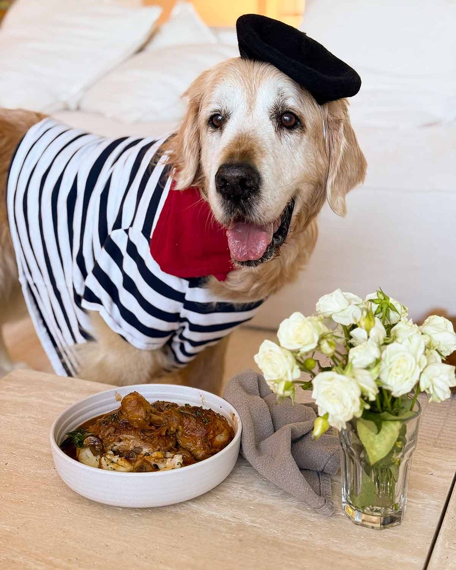 Dozer paid a visit to his Parisian tailor and he’s all dressed up for his first French meal!