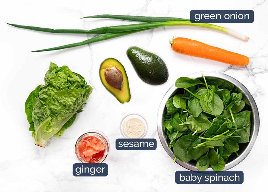 Garnishes – I use white sesame seeds and green onion. Finely sliced nori (seaweed sheets), crispy shallots, crispy wonton strips, chives or parsley would also be at home here.