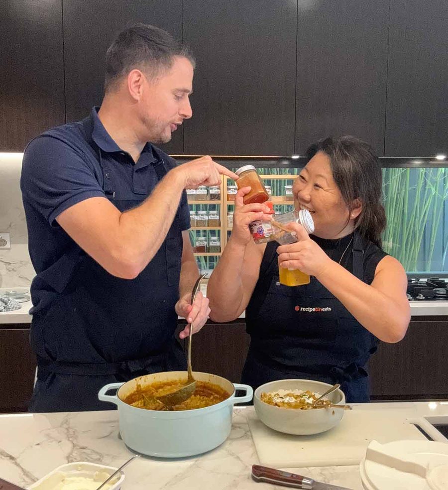 Ghee – A clarified butter commonly used in Indian and Middle Eastern cooking for its rich buttery flavour and high smoke point. Sold at large grocery stores here in Australia these days. Substitute in a pinch with butter or coconut oil.