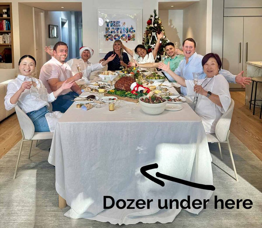 Truthfully though. Mr Dozer went out too hard at the beginning of the day and spent most of the shoot sleeping under the table, completely oblivious that it was laden with food. Here we are mid-shoot enjoying a Christmas lunch!