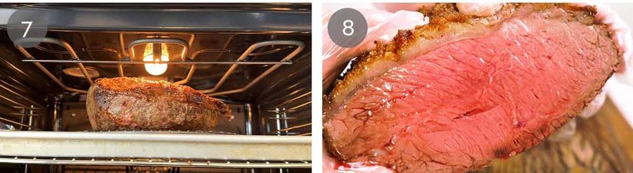 It’s really important to have a meat thermometer to cook rump cap because if you accidentally take it beyond medium rare, the meat starts to venture into unpleasant-chewy territory. Pricier roasting cuts are more forgiving as they have characteristics to cushion that mistake – prime rib/standing rib roast has far more intramuscular fat and beef tenderloin has natural tenderness.
