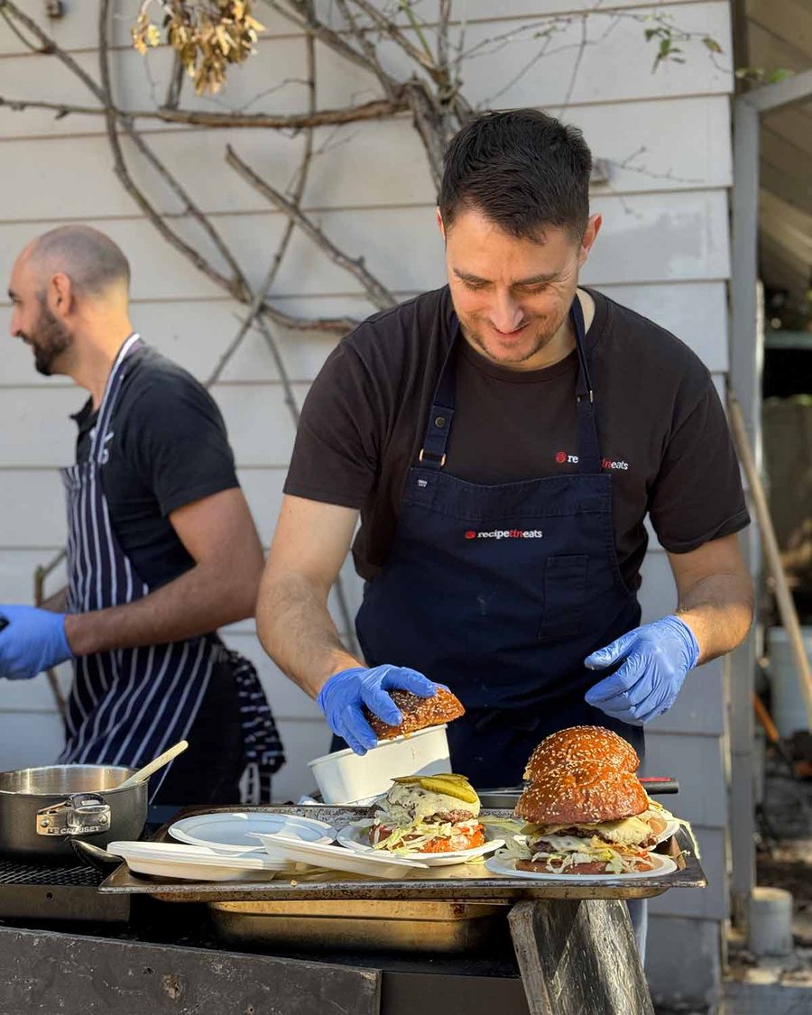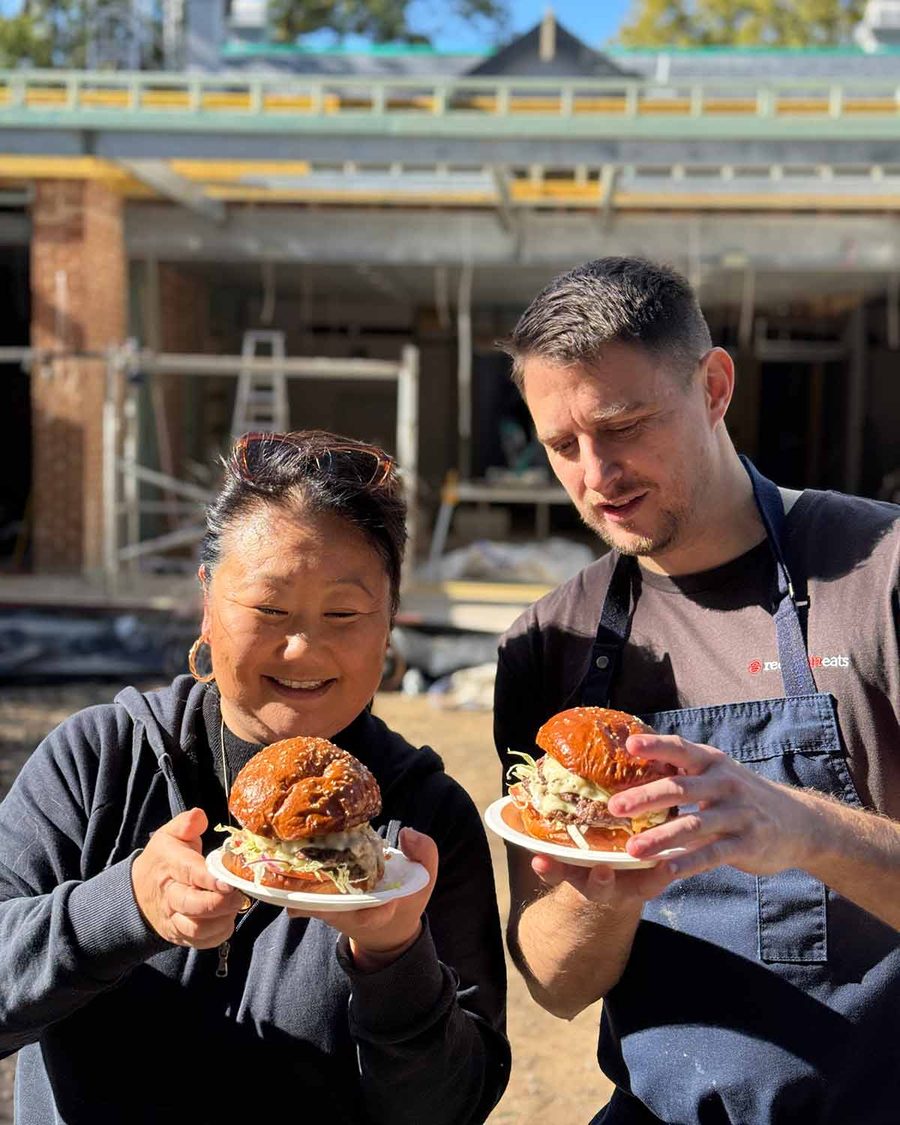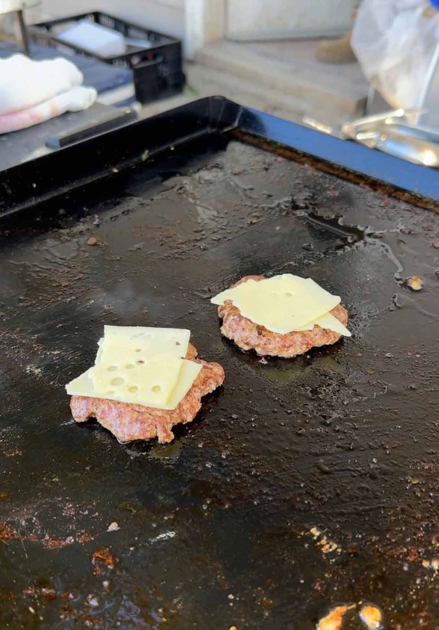Yesterday on site was a fun day. JB and I popped over to do burgers for the builders. Double cheeseburgers, complete with homemade special burger sauce!