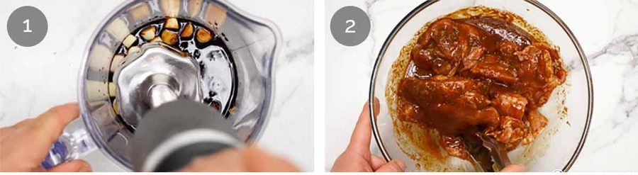 Blitz – Place Marinade ingredients EXCEPT oil in a jug just large enough to fit the head of a stick blender. Blitz until lemongrass and garlic is fully pureed. (No stick blender? Finely grate lemongrass and garlic, then mix)