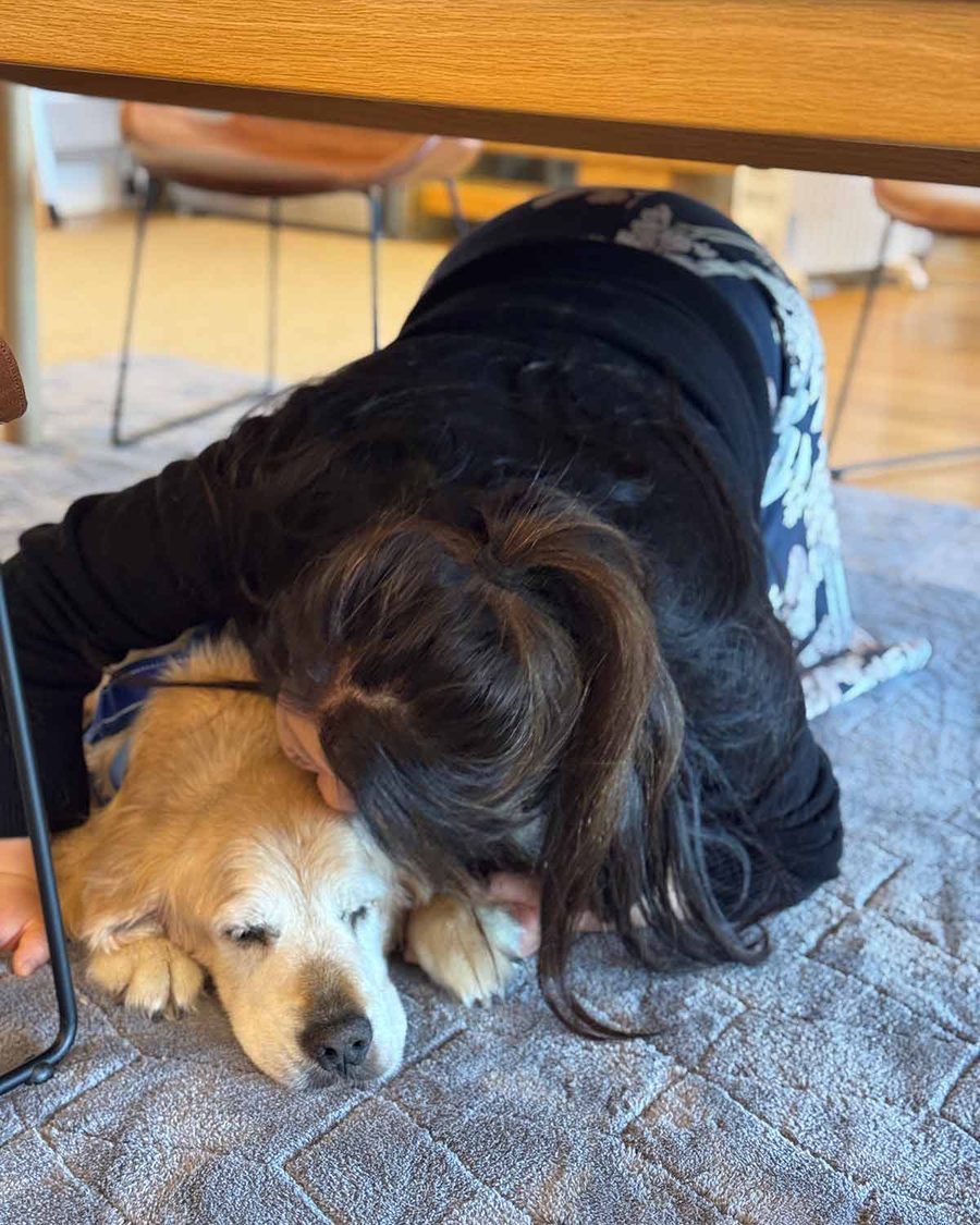 Dozer spends a lot of time sleeping under the table – so I spend a lot of time under there too. 🙂