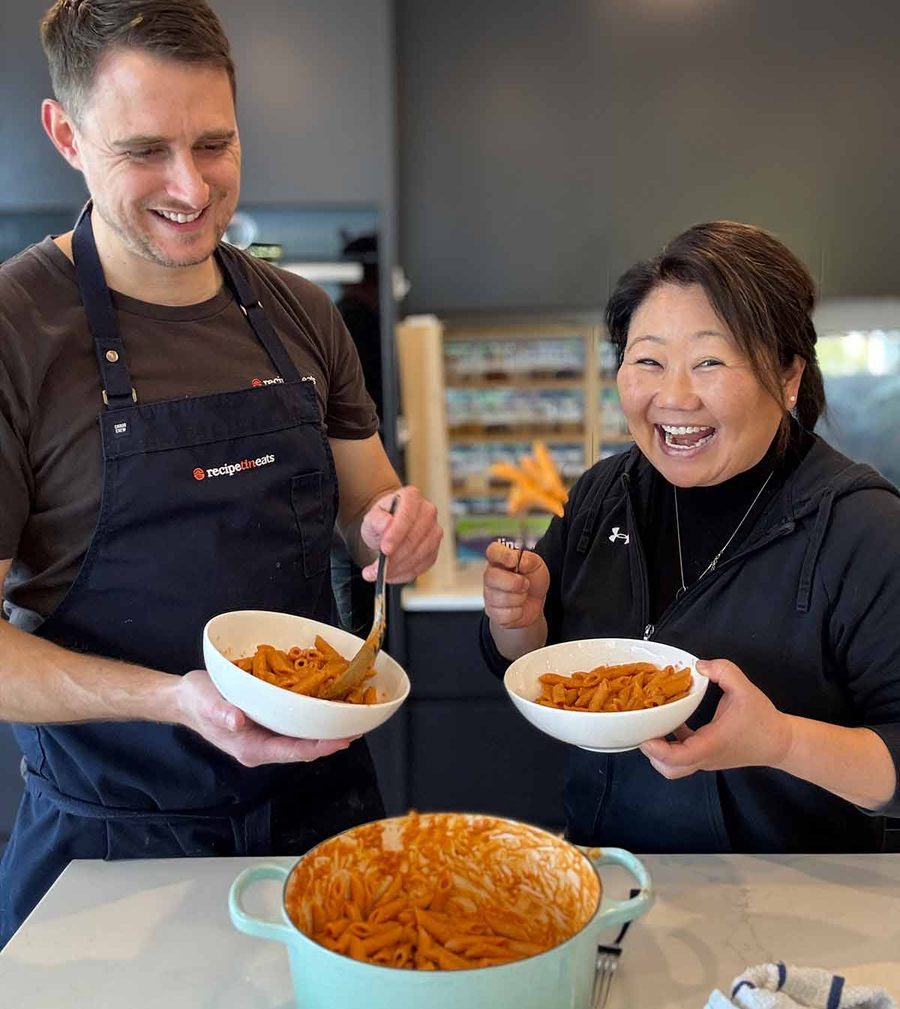Meanwhile, this un-hip dork is more chuffed over the convenience of using a whole packet of pasta and an entire tub of tomato paste – quite handy!