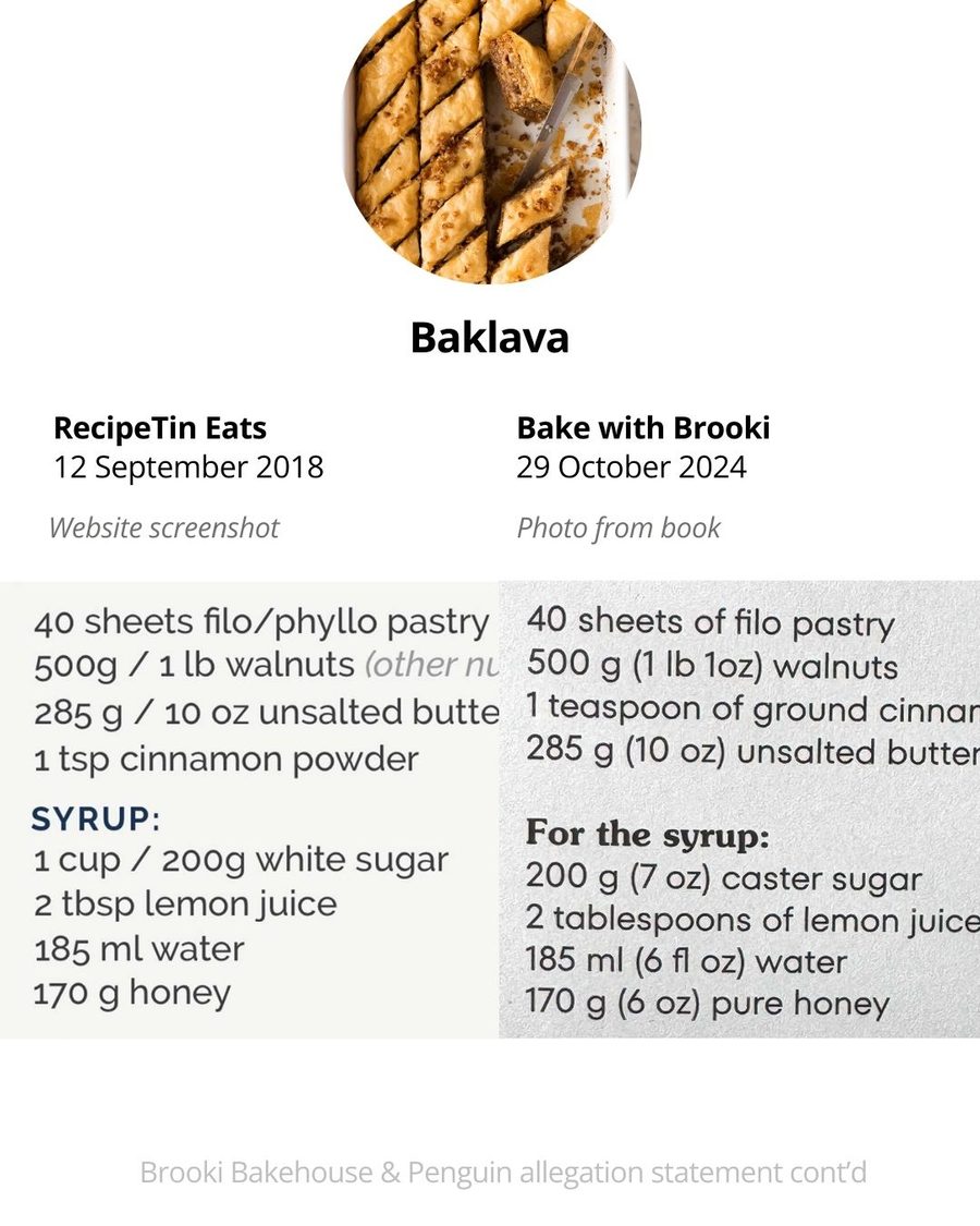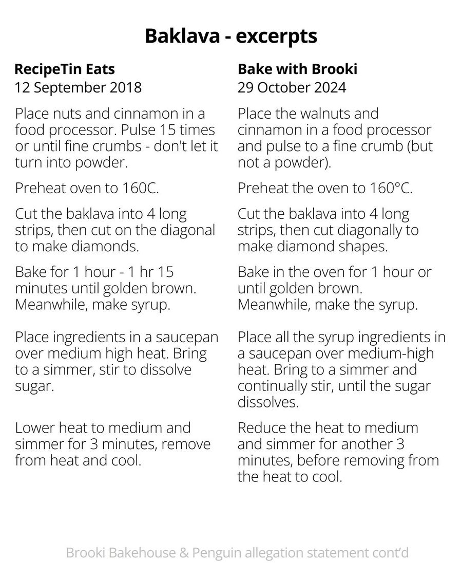 And here is a side-by-side look at extracts of the Baklava recipe I published to the one featured in Bake with Brooki. Click here for a photo from the book to compare the recipes as a whole. To me, the similarities speak for themselves.