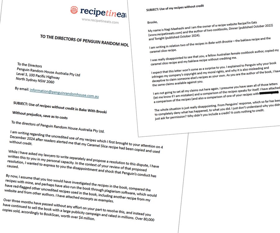 I have made copyright infringement allegations against Penguin Random House Australia, claiming there are plagiarised recipes in the bestselling book Bake with Brooki, including two from my website and other authors, including cookbooks.