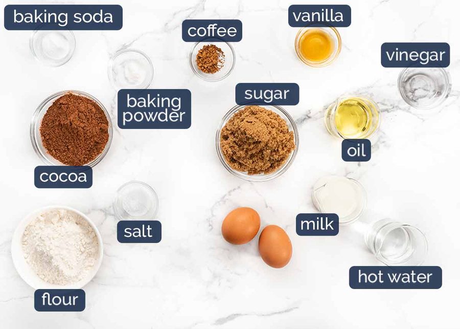 • Cocoa powder – Regular unsweetened cocoa powder, not dutch processed. Well, dutch processed will work, but it’s more expensive and unnecessary here, I feel. Reserve it for the special occasion cakes where I insist on using it! 🙂