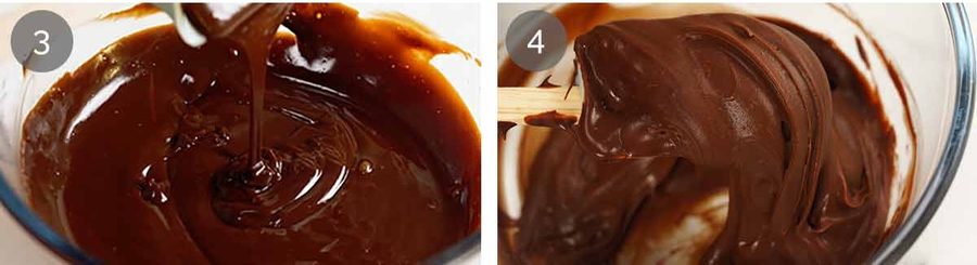2. Refrigerate for 2 hours, mixing every now and then, until it a spreadable peanut butter consistency. You can leave it longer, or overnight – the ganache will become too firm to spread but can be softened by leaving it out on the counter for 30 minutes or so.