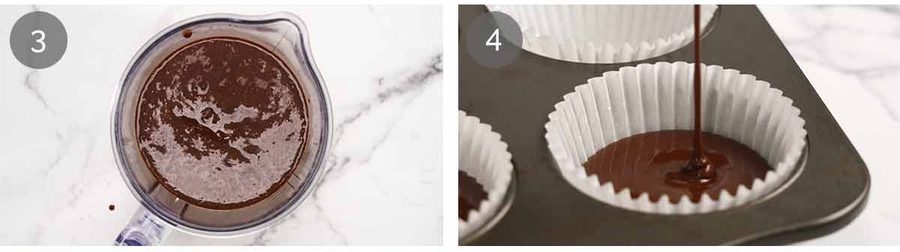 2. Fill cupcake liners – Fill the cupcake liners half full with batter. I find it easiest to do this with a jug because the batter is so thin. Don’t fill more than halfway, else the cupcakes will overflow and/or sink in the middle.