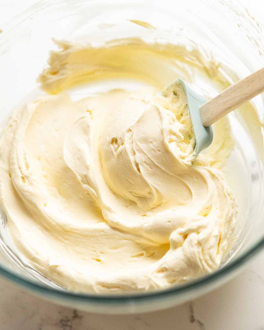 • Cream – Use thickened cream (heavy cream in the US) or any regular cream labeled for whipping. Avoid pouring creams (for cooking) and very thick dollop creams (can’t be whipped). High-fat double cream (45%+) can also be whipped and is more stable, so you can skip the cream cheese. It usually holds for 2 days, but is much richer due to the higher fat. 🙂